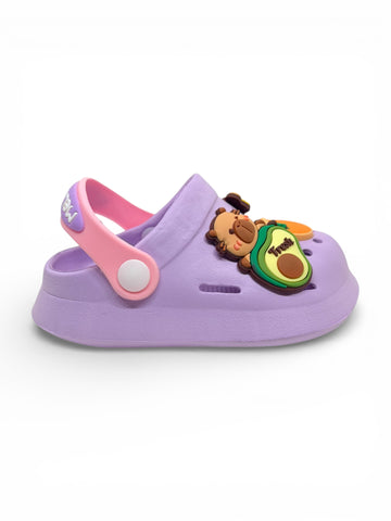 Cartoon & Typography Applique Anti Slip Perforated Sling back Clogs - Mauve