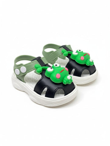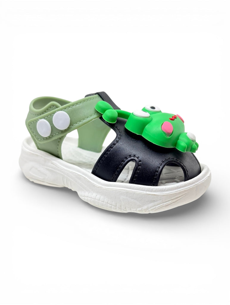 Frog Applique Detailed Slingback Sandals - Black
