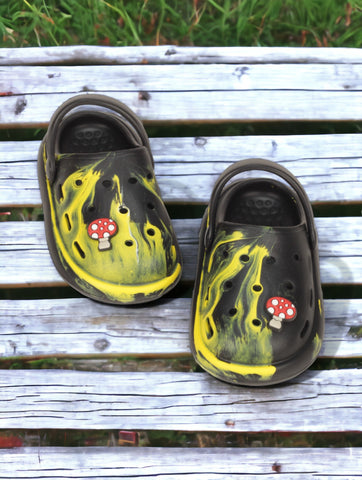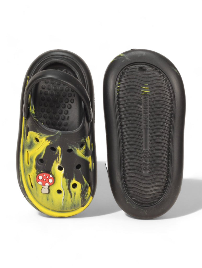 Marble Look Mushroom Applique Anti-Slip Clogs - Black