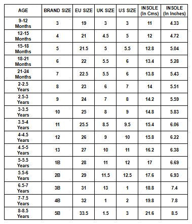 | INSOLE | AGE | EURO | UK | US | Outsole |